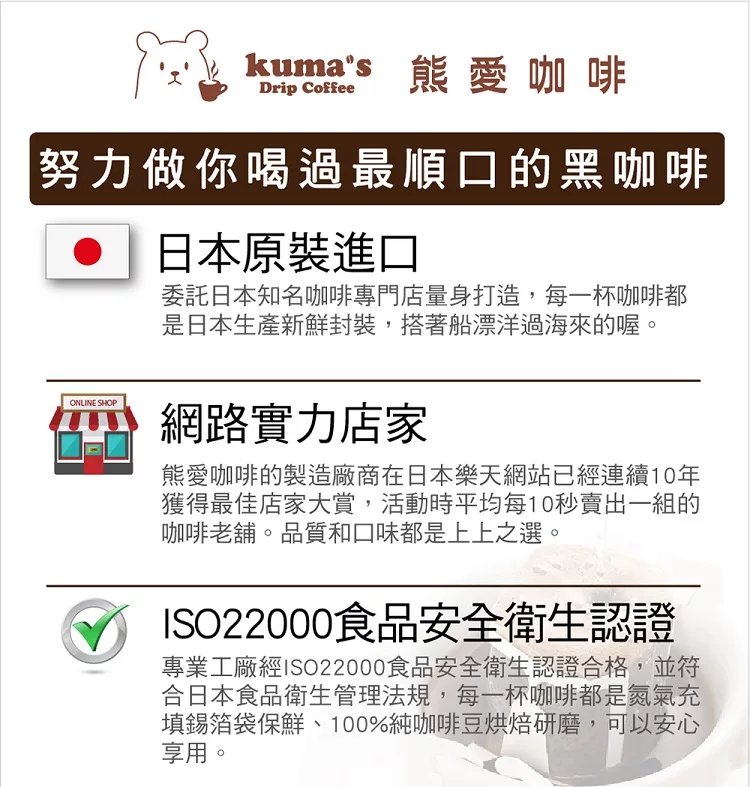 【kuma’s熊愛】炭燒風味掛耳式咖啡6P袋裝 評價